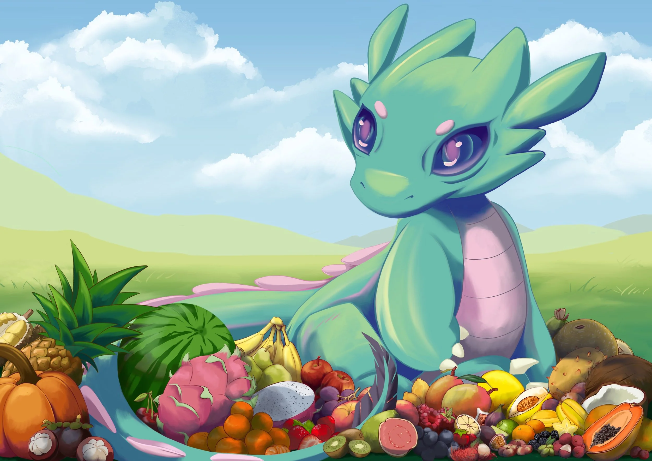 Little fruit dragon having a fruit feast